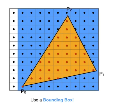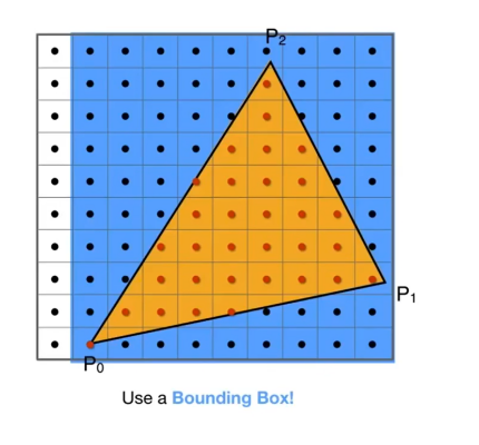 优化:由于每个像素都要与三角形做叉乘,这很费时间,所以我们可以将不可能在三角形内部的像素点先全部排除