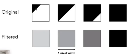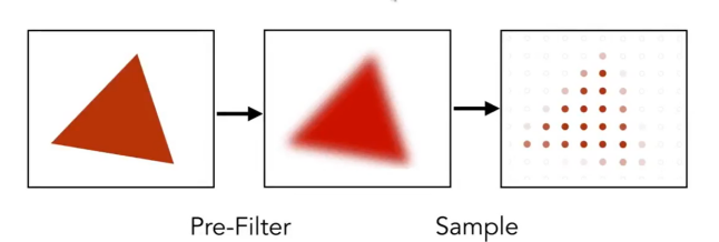 先模糊三角形,然后进行采样(先使用低通滤波,来过滤掉边缘的高频部分,然后对三角形进行采样)