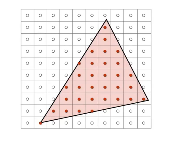 3.Rasterization:光栅化,将矢量图形(如三角形)转换为像素(栅格)的过程,本质是将连续的图形所包围的范围离散为像素。