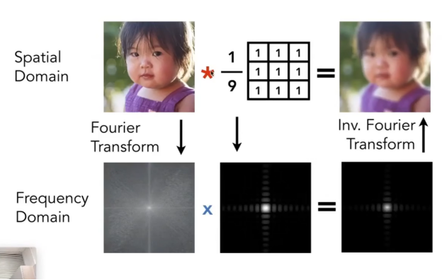 以上是一个3*3的box,即将9个像素加起来,然后求平均值,最后写入中间像素,所以在做完这个操作后,图像的边缘部分更加柔和,体现在图像上就是边界被模糊了(低通滤波),在频谱图上也能够看出,高频信号减少了。