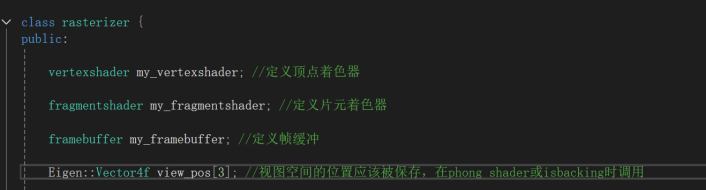 在rasterizer类中,定义此成员,这样我们就能调用vertexshader中的矩阵