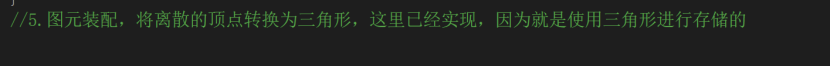 下一阶段是光栅化阶段,首先进行的是图元装配,将离散的点组成三角形,其实这里我们已经做了,因为我们一开始就是用三角形存储的,而不是离散的点,实际上正规的做法是我们先得到离散的点(经过裁剪后的三角形),然后在此处再重新组成三角形