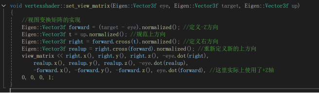 重要的还是看MVP矩阵,我们一般使用的都是左乘矩阵,这里注意一下,rotation_matrix如果乘在model_matrix左边就是对模型进行旋转,如果乘在view_matrix左边,就是旋转摄像机了。