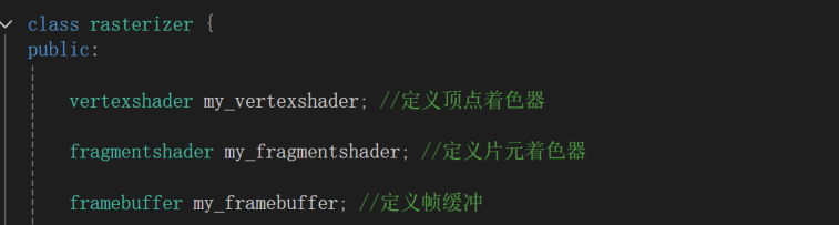 然后,我们就可以来实现渲染管线,我们需要一个rasterizer类,我们将在这个类中实现完整的渲染管线。我们将在此类中定义draw方法,draw方法将完整模拟整个渲染管线。