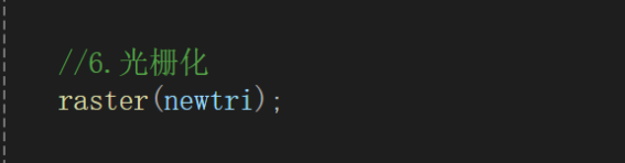 然后,从三角形像素遍历到得到整个颜色缓冲图我们都在raster函数中进行。