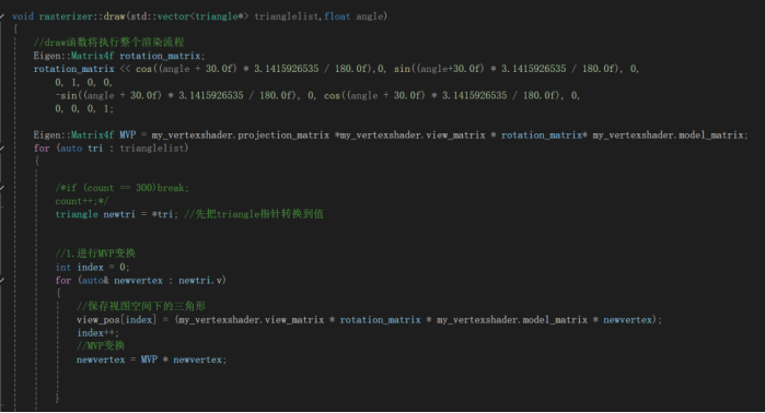 这就是draw函数的实现,rotation_matrix矩阵是为了我们能够对模型进行一定的旋转。