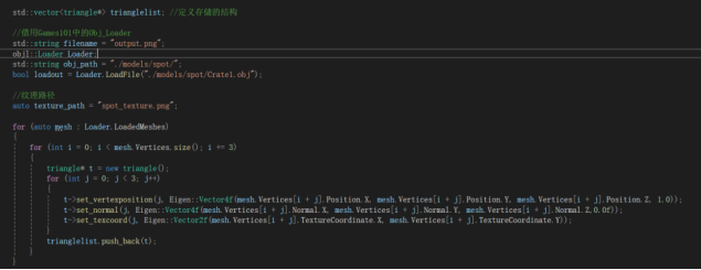 然后,我们在main方法中来导入obj模型,这里我们需要用到obj模型导入器,我们就借用下games101中的obj模型导入器,这里你可以直接copy代码,这里不重要