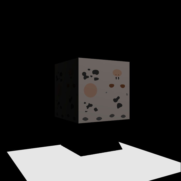 上面这张图是渲染立方体和一个平面的效果图,采用了phong shading,采用了两个点光源,照射面与非照射面的亮度有明显差异,以及下方的阴影。