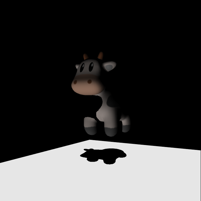 这张图渲染了更复杂的模型,有一个小的问题,shadow mapping实现的时候我将在阴影中的像素直接跳过渲染,所以导致光线照射下来时,牛的鼻子会遮挡下面自己的模型。