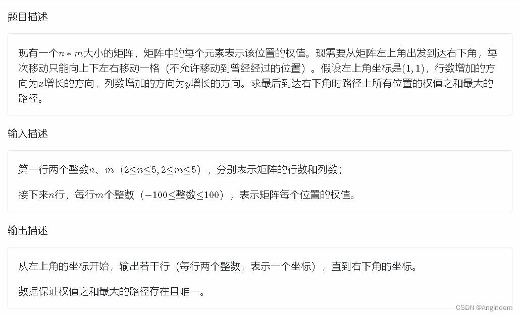 该程序使用深度优先搜索(DFS)策略,通过暴力搜索找到一个二维矩阵中从左上角到右下角的最大路径和。在搜索过程中,它跟踪经过的坐标,更新最大路径和,并在找到更优解时保存路径。矩阵的每个单元格的值被累加到路径和中。最后,输出最优路径的坐标。