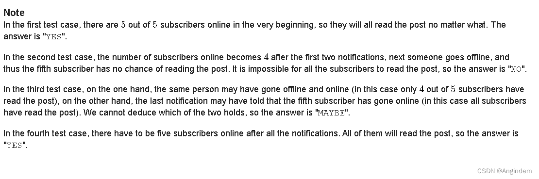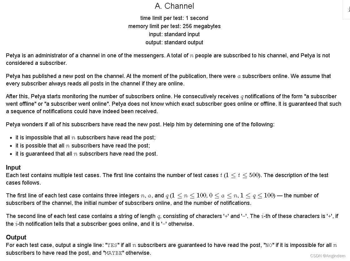 给出 目的人数n看到通告的数量,初始人数m上线的数量,通知系统上线q条消息,‘-’表示有人下线,‘+’表示有人上线。请输出是否可以有 n 个人看到消息,有输出 YES,可能有 输出 MAYBE,没有输出NO;