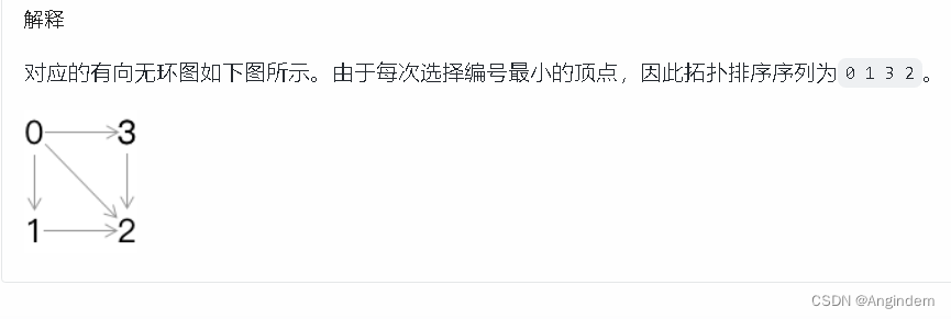 由于有多种合法的拓扑序列,所以题目要求选择编号最小的结点排序。