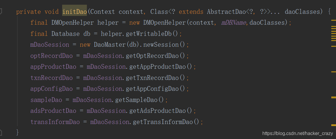 2.DaoSession主要是做数据库的增删改查的映射,DaoSession的初始化及使用都是依赖DaoMaster。