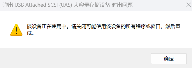 我现在要弹出我的移动硬盘,当我点击弹出 RTL9210时,出现如图问题