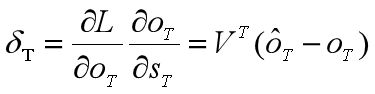再来看看W和U的更新,像DNN的反向传播一样,我们引入一个中间变量,暂称之误差delta,t时刻的误差delta_t:
