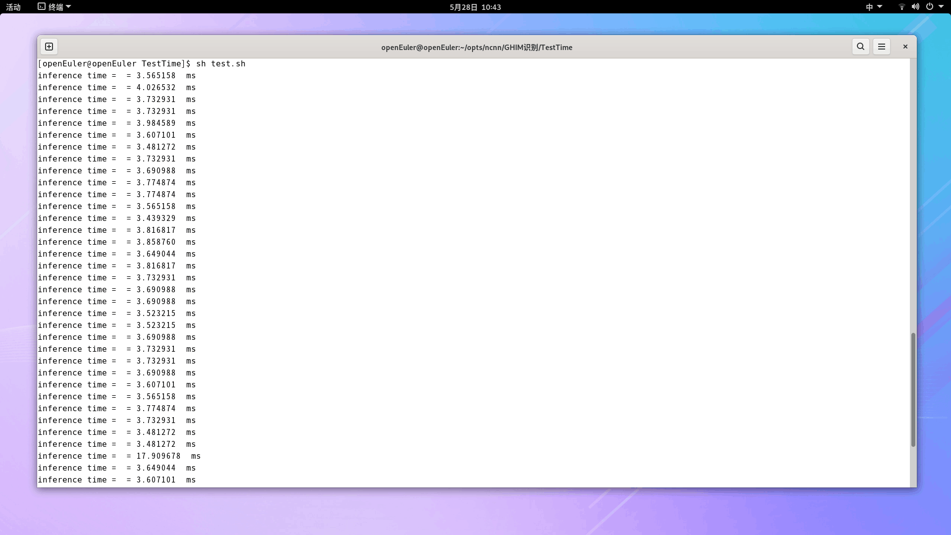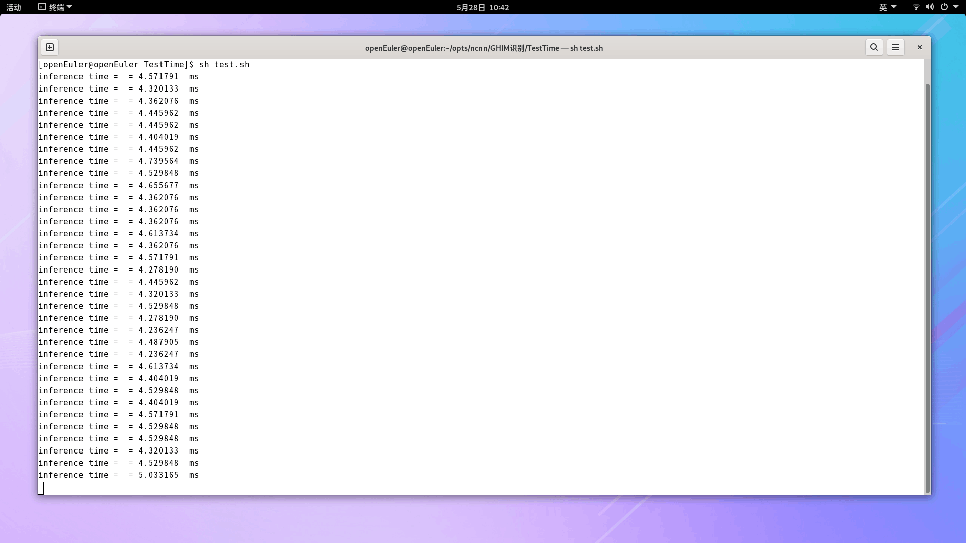 print('Inference use time='+str((end_Inference-start_Inference)*1000/nums)+' ms')