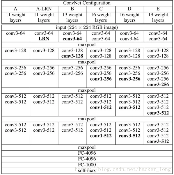 VGGNet的网络结构如下图: