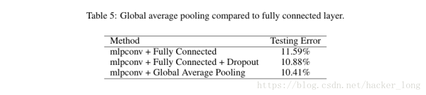 如下图是在CIFAR-10 数据集中 Global average pooling 和 fully connected测试对比图, 从下图可以看出无参数的Global average pooling层 相比较于有参数的全连接层错误率更低。