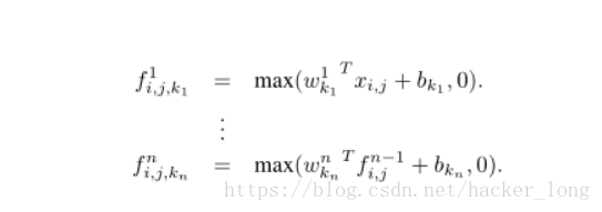 i,j表示像素下标,xi,j表示像素值,wk,n表示第n层卷积卷积参数。