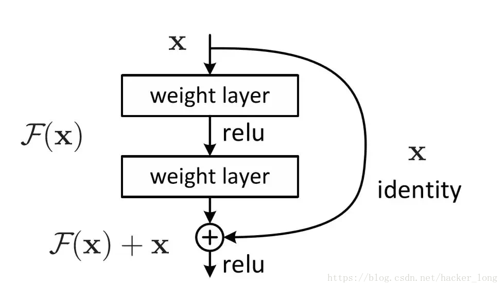 y = H(x,WH) + X,此所谓残差连接,skip connection。