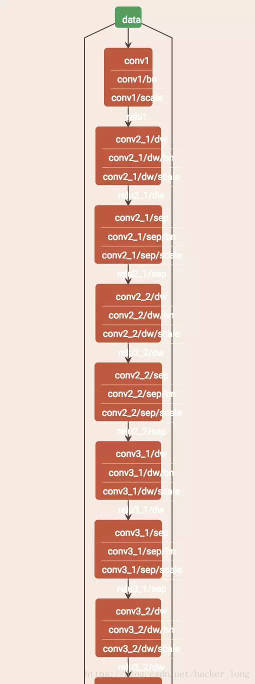 但是,不知道从何时开始,pooling没了,对,就是没了。这是mobilenet【1】可视化后的部分结构图,懒得去画block图了。