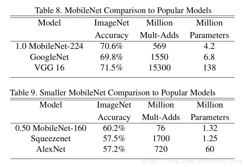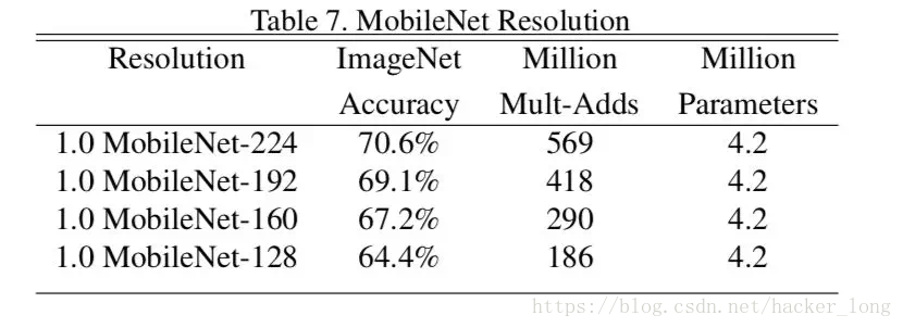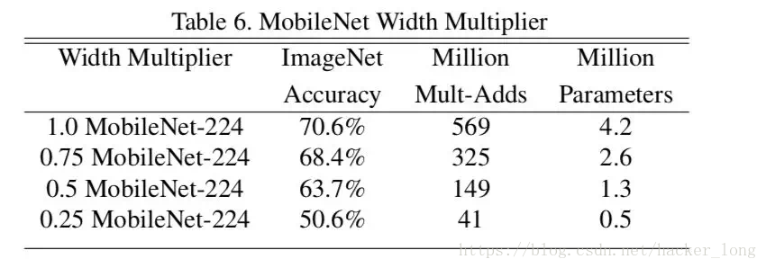 可以通过定义width multiplier α(宽度乘数)和resolution multiplier ρ (分辨率乘数)两个超参数,来实现不同版本的mobilenets,从而实现不同要求的模型压缩。