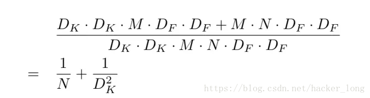 一般情况下N比较大,当DK=3时,depthwise sparable convolution计算量仅为普通卷积计算量的1/9。