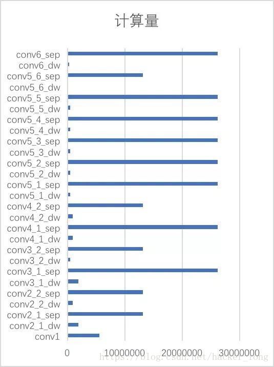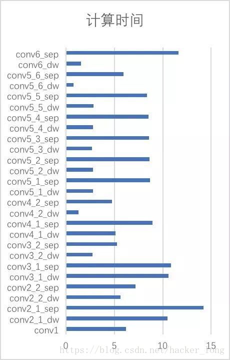上面可以看出,计算量最大的是conv6_sep,conv2_1_sep,理论上conv2_1_dw计算量与conv2_1_sep不在一个量级,但是实际上相当,这是库实现的问题。