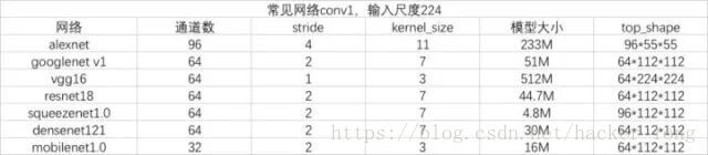 从上面的表看,主流网络第一个卷积,kernel=3,stride=2,featuremap=64,mobilenet系列已经降到了32。
