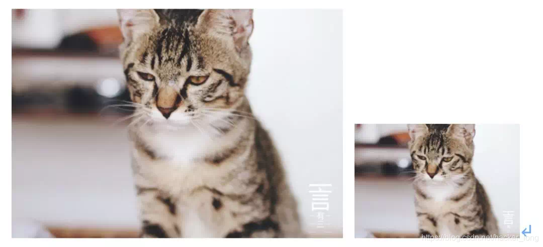 物理尺寸相同,DPI较低表现为较低的分辨率,此时每英寸的点数变少,像素变大。如下面两张图,图像实际大小相等,但是右边的图像分辨率较低,像素数较少,清晰度有所下降。