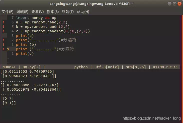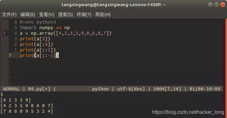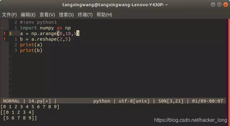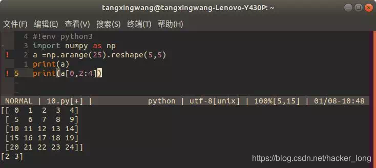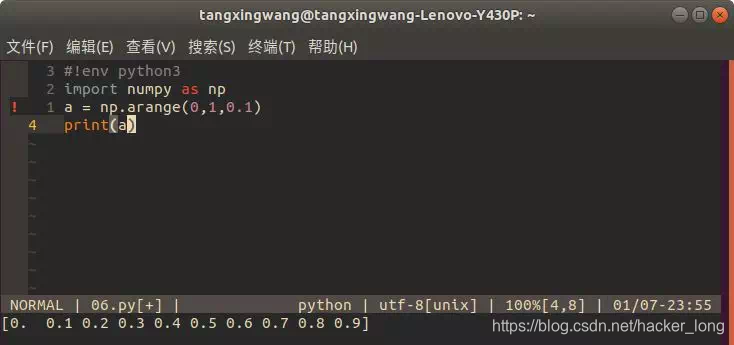 上面我们创建的数组里面的元素都是我们指定的,那么如何自动生成数组?又如何随机的生成一个数组呢?我们首先看第一个方法arange(),如下: