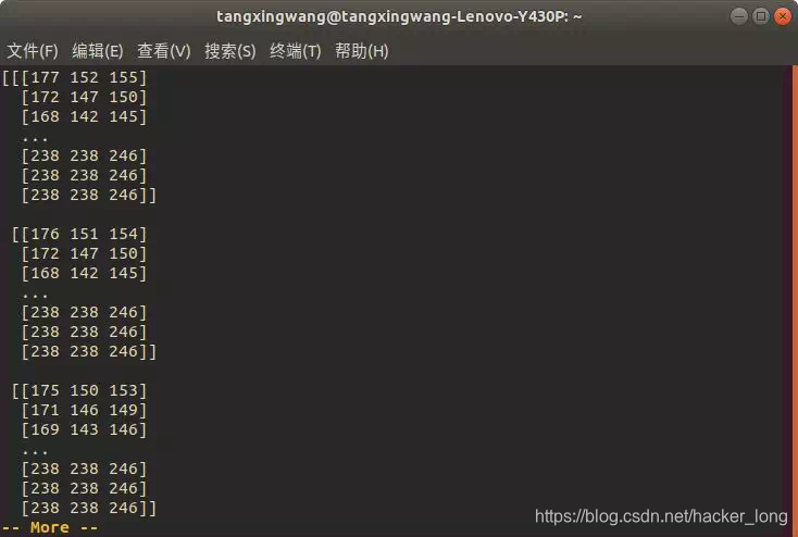 可以明显看到这是ndarray格式,总共三个通道,分别代表RGB。