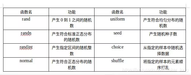 在NumPy中有一庞大的函数库,对于随机数我们可以采用numpy.random模块,该模块中有大量和随机数相关的函数。一些函数如下:
