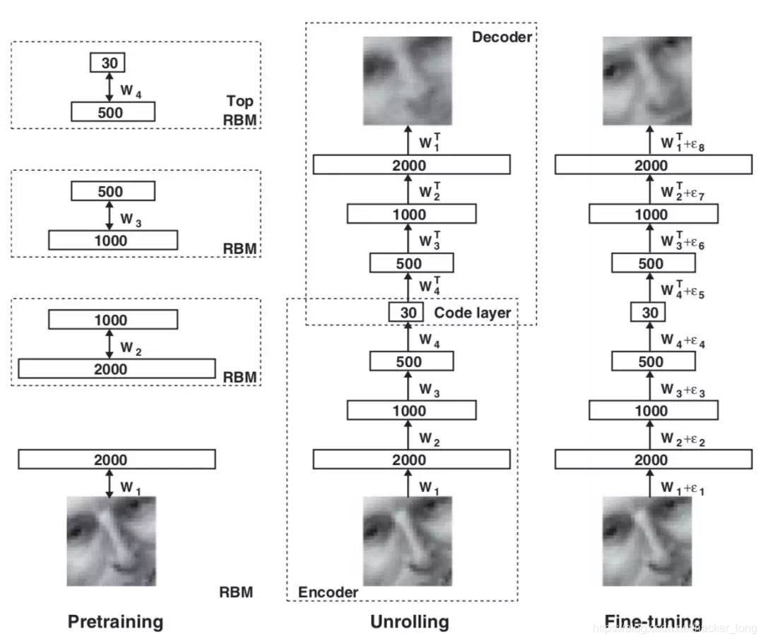 2006年Hinton等人在science期刊上发表了论文“Reducing the dimensionality of data with neuralnetworks”,揭开了新的训练深层神经网络算法的序幕。利用无监督的RBM网络来进行预训练,进行图像的降维,取得比PCA更好的结果,通常这被认为是深度学习兴起的开篇。