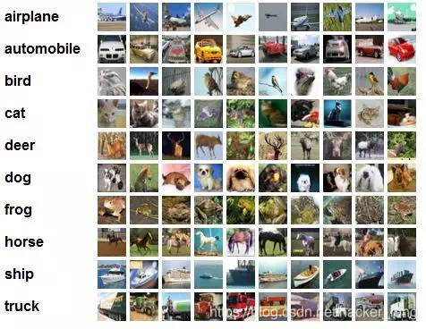 2009年,CIFAR10和CIFAR100数据集被整理。由于MNIST是一个灰度图像数据集,而大部分现实的任务为彩色图像,所以Alex Krizhevsky等学者从TinyImage数据集中整理出了CIFAR10和CIFAR100。与MNIST一样CIFAR10数据集也有60000张图像,不过图像为彩色。图像大小是32×32,分为10个类,每类6000张图。其中50000张用于训练,另外10000用于测试。CIFAR100则分为100个类,每一类600张图像。