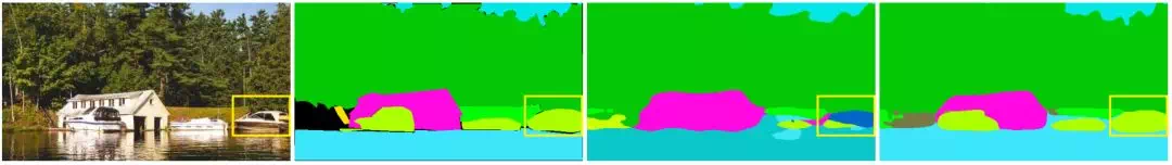 通常来讲,我们判断一个东西的类别时,除了直接观察其外观,有时候还会辅助其出现的环境。比如汽车通常出现在道路上、船通常在水面、飞机通常在天上等。忽略了这些直接做判断,有时候就会造成歧义。比如下图中,在水面上的船由于其外观,就被FCN算法判断成汽车了。