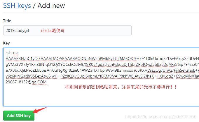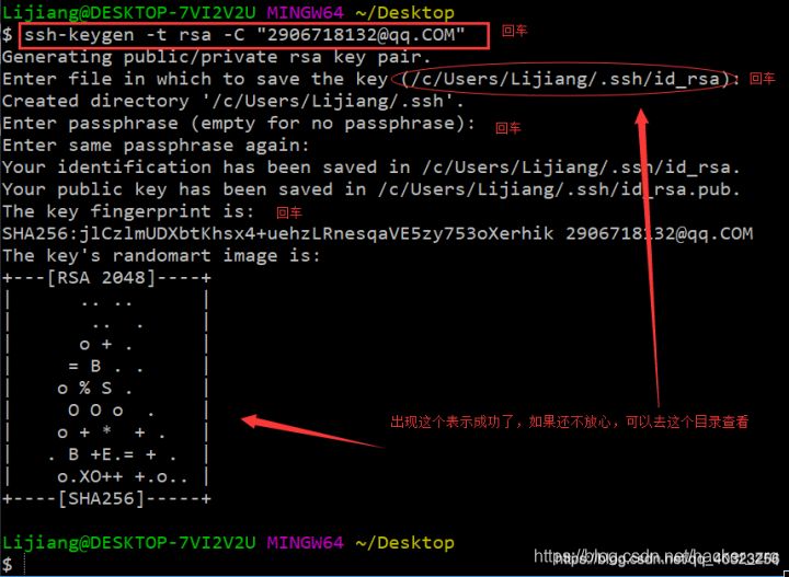 只需输入命令:ssh-keygen -t rsa -C "2906718132@qq.COM" 特别注意大小写和空格,用大写的C !!!三次回车后,就生成了本地ssh了