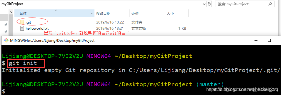 然后可以看到该项目就下载到刚刚新建的本地文件夹“myGitProjectRemote”了。此时会发现版本的管理目录“.git”也过来了