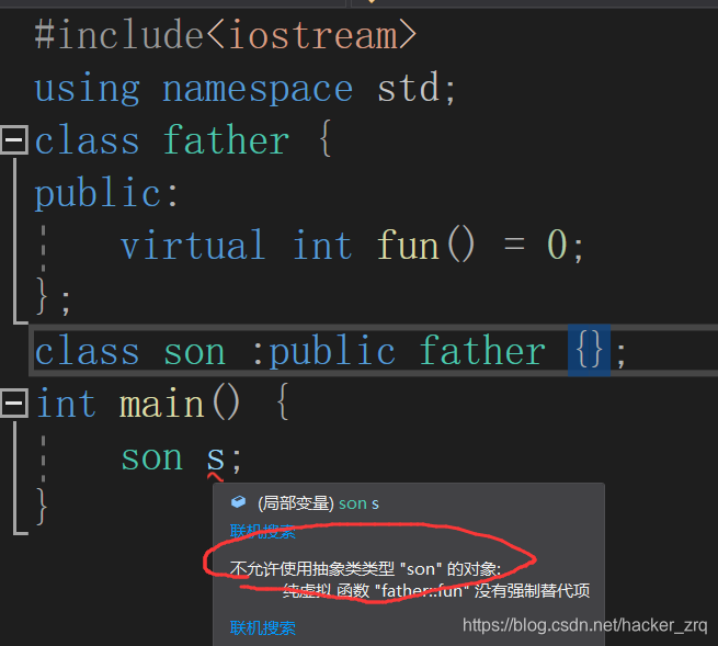 子类必须重写虚函数,否则也属于抽象类,也无法实例化对象。