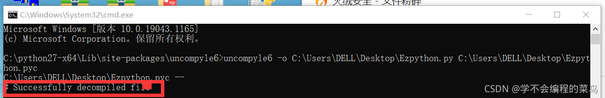 win+r打开cmd,先用2.7版本的pip5去下载uncompyle6.