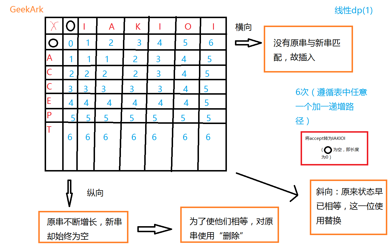 fi,j=min(min(fi−1,j+1,fi,j−1+1),fi−1,j−1+(ai==bj?0:1))