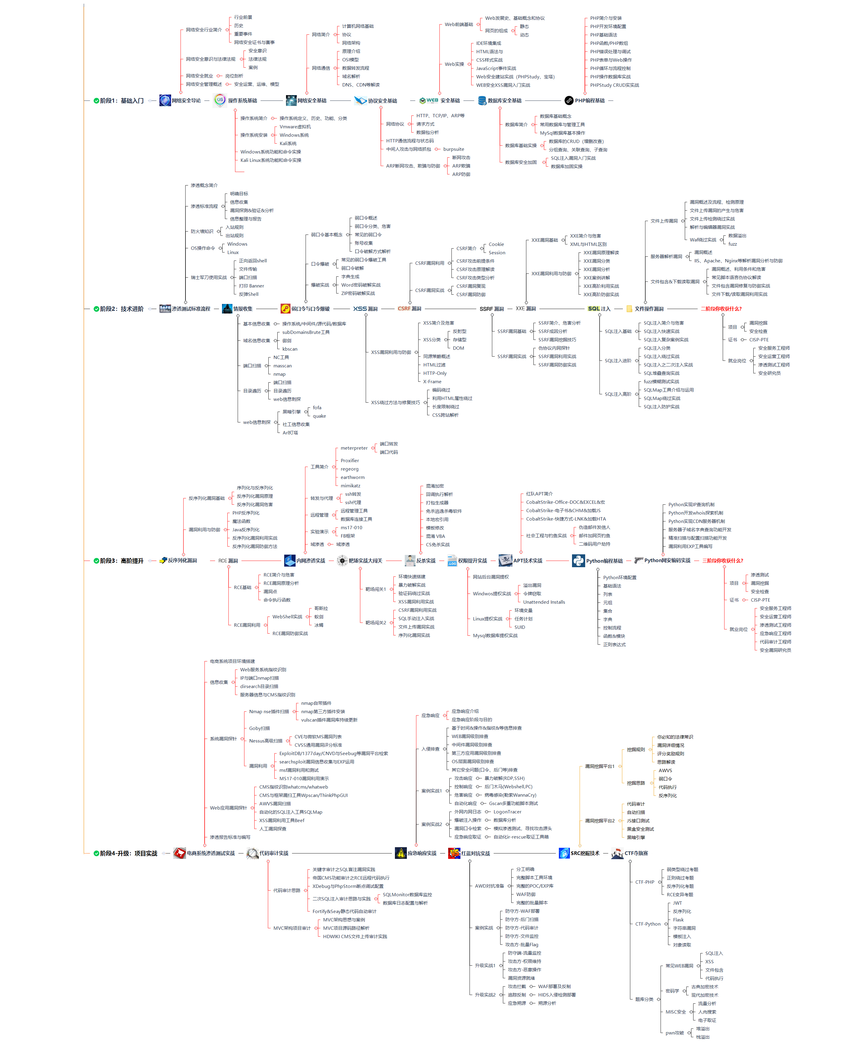 免责声明: 本路线图旨在提供学习方向的整体概览和逻辑路径参考,尤其在你对“接下来该学什么”感到困惑时。请务必记住:工具和技术永远在迭代更新,原理理解优先于工具操作! 不要盲目追逐“热词”。关键在于搞清楚每种技术解决什么问题(比如WAF如何抵御注入,沙箱如何分析恶意代码),以及在什么场景下最适用。热门的新技术不一定能解决你当前面临的实际问题。