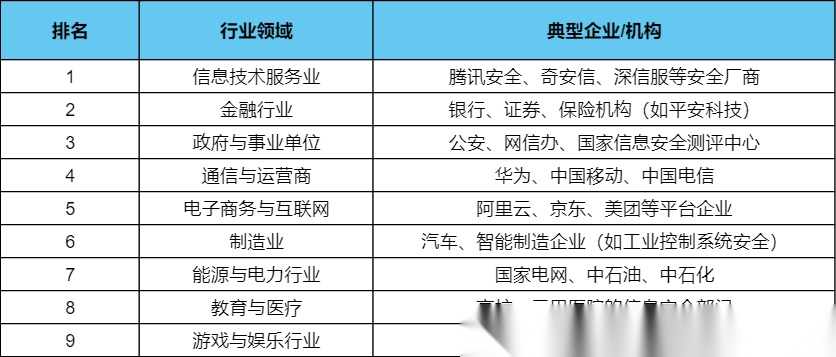 **跨行业应用:**金融、政务、能源、通信等行业的网络安全岗位。