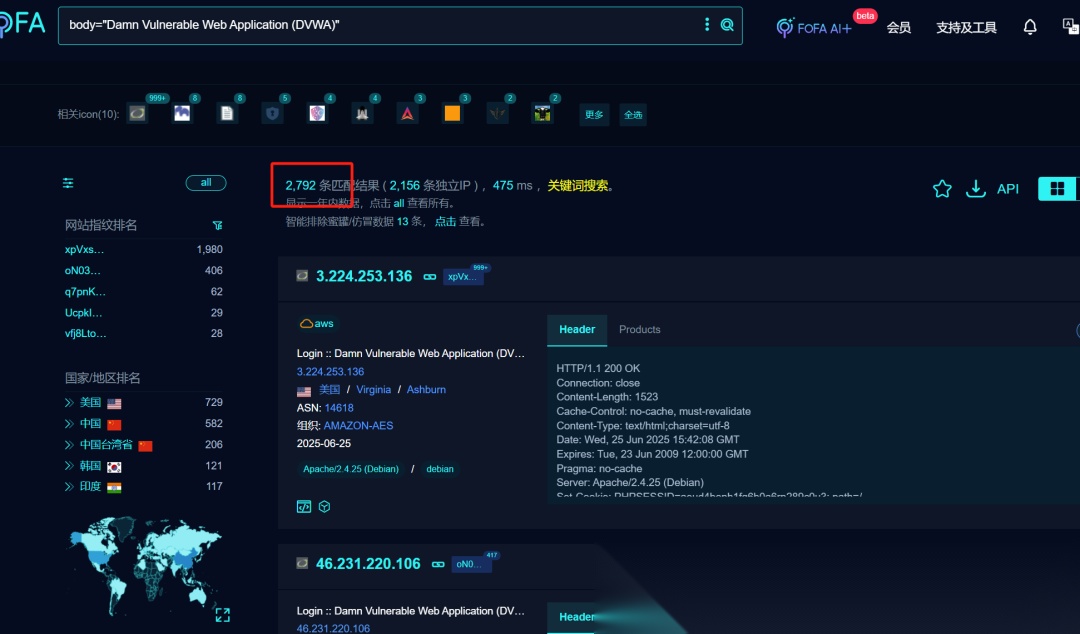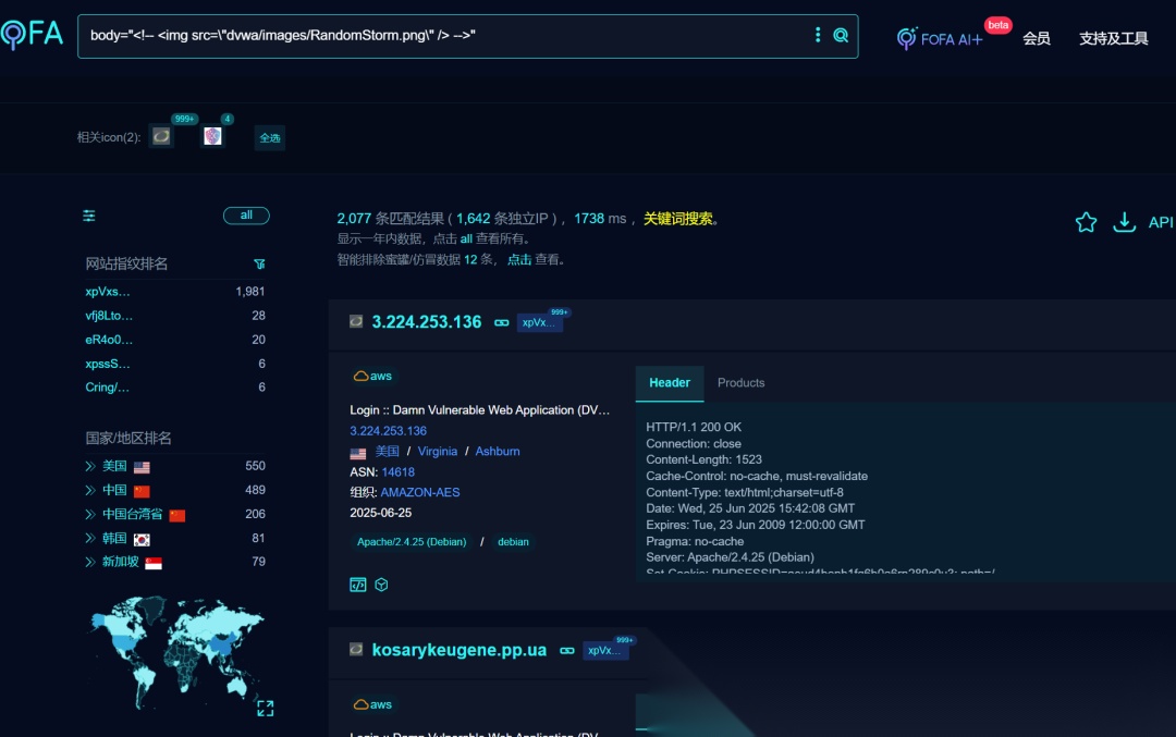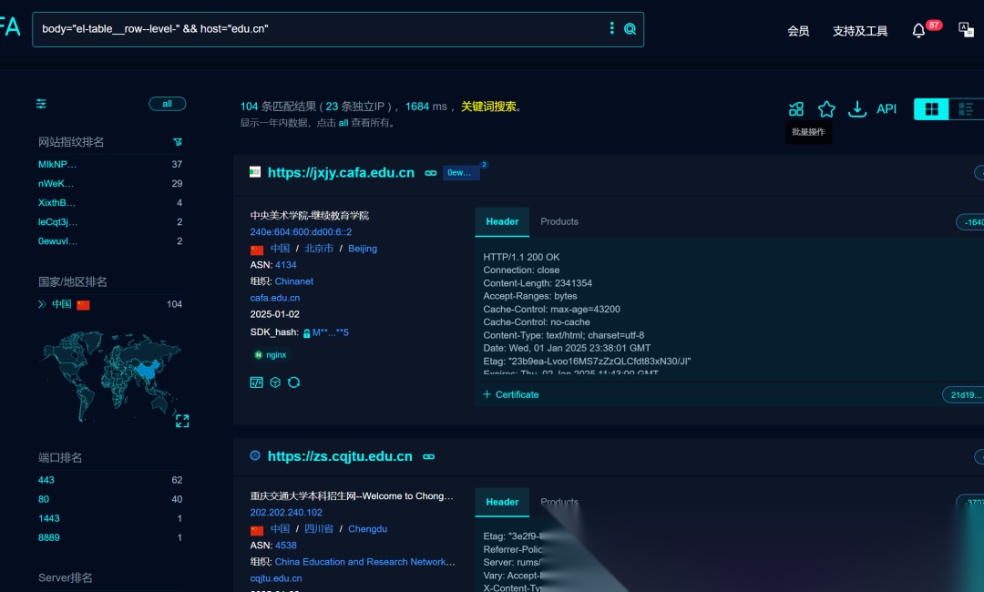 根据这些指纹信息,都能搜到大量相同的网站。
