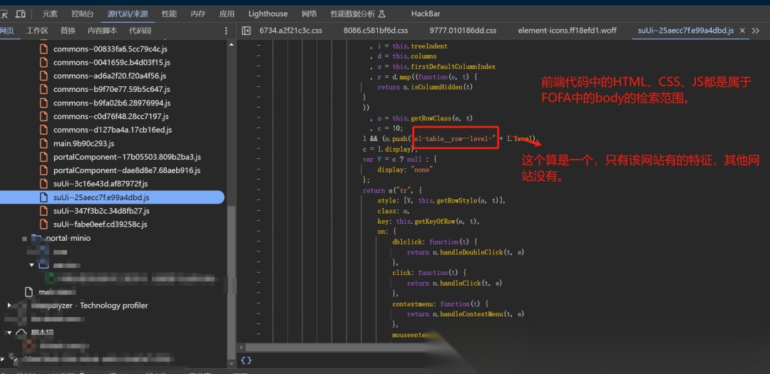 前端代码中的HTML、CSS、JS都是属于FOFA中的body的检索范围,这里就是咱们提取指纹的地方。