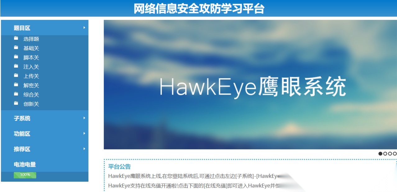 提供基础知识考查、教程等资料。实战演练以Web题为主,包含基础关、脚本关、注入关、上传关、解密关、综合关等。