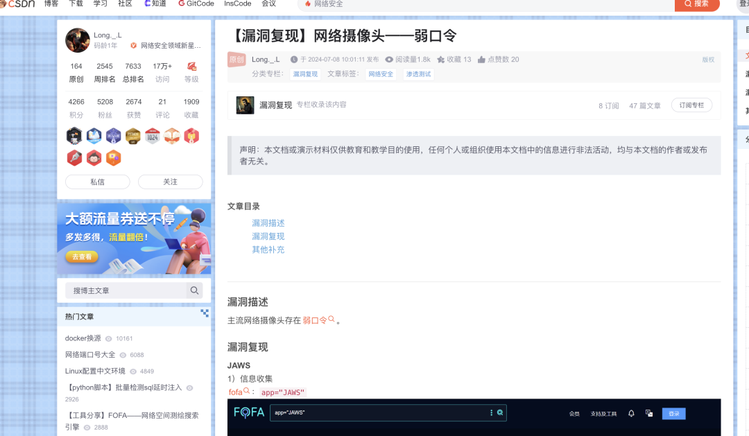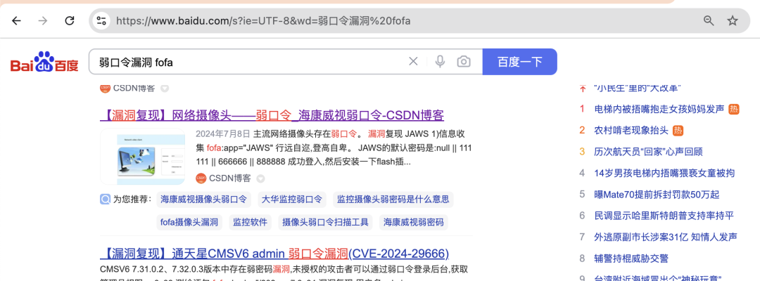 如使用百度语句弱口令漏洞 fofa进行检索,进入一篇文章可得到fofa语句:app=“JAWS”