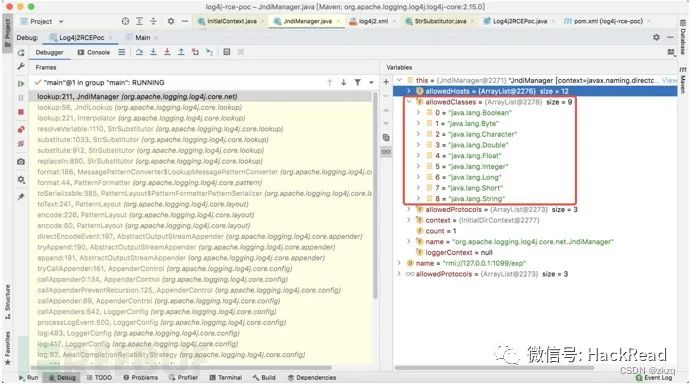 除去一些测试代码和辅助代码,该commit最主要内容是在3.5章节中提到的 JndiManager.lookup()方法增加了几种限制,分别是allowedHosts、allowedClasses、allowedProtocols。