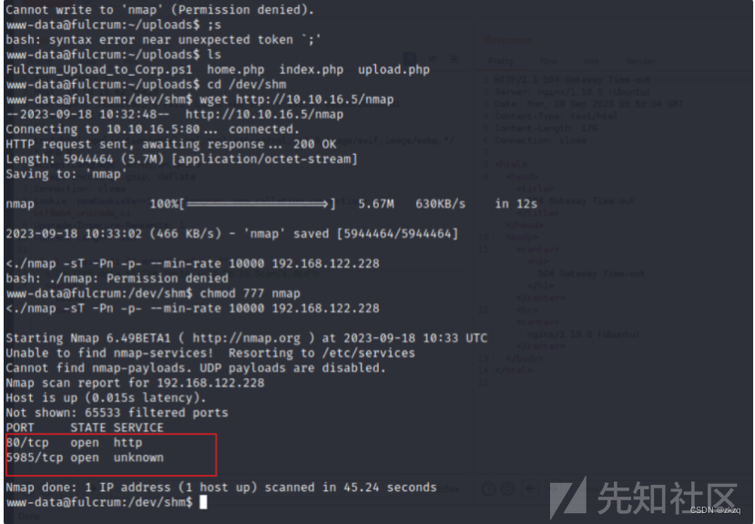 上传nmap,然后进行端口扫描,发现其存在5985端口。